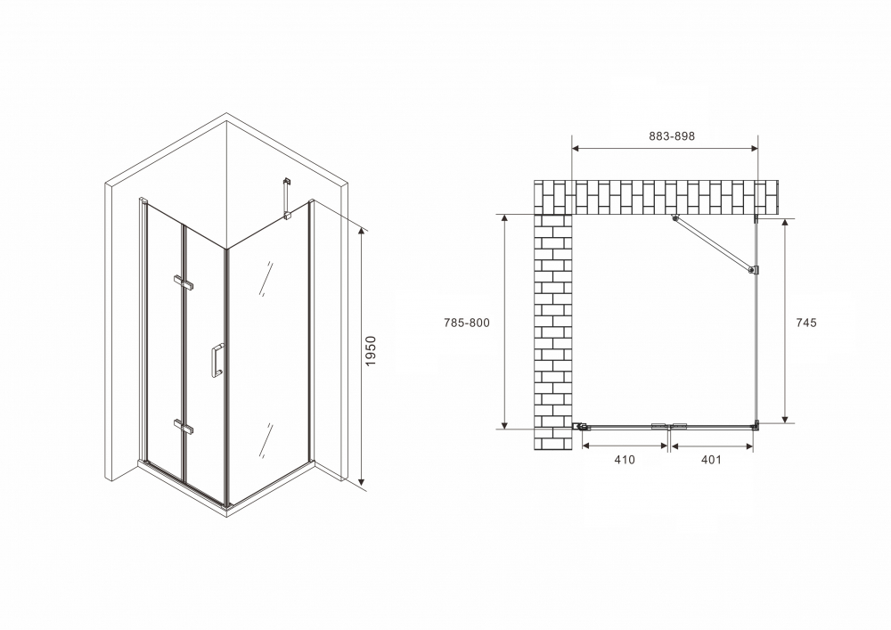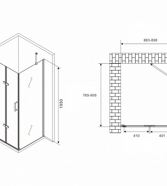 Угловое ограждение Abber Zart AG08090P-S81 195х80см стекло прозрачное