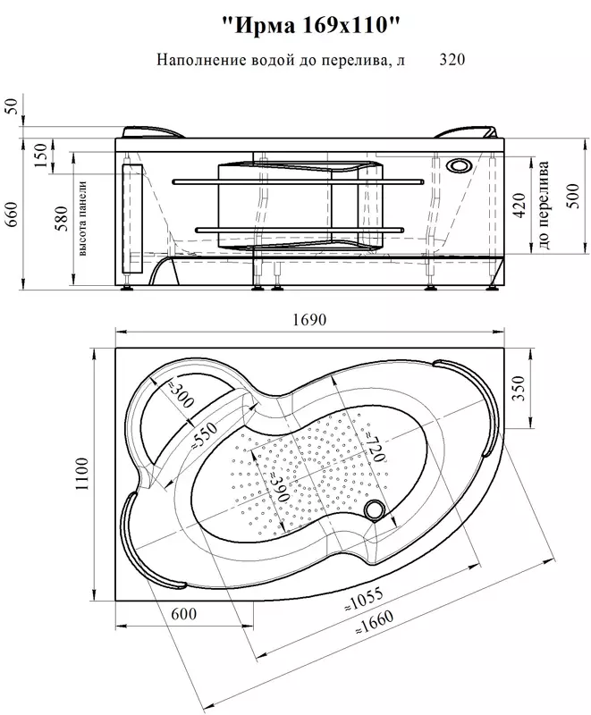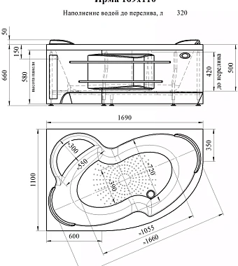 Ванна акриловая RADOMIR Vannesa Ирма 2-77-2-1-0-217 169х110см угловая - купить в интернет-магазине Орегон с доставкой в регионы Крыма.