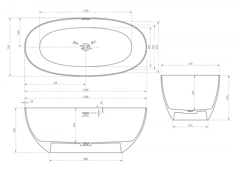 Ванна каменная Abber Stein AS9624-1.5 150х72см отдельностоящая - купить в интернет-магазине Орегон с доставкой в регионы Крыма.