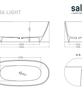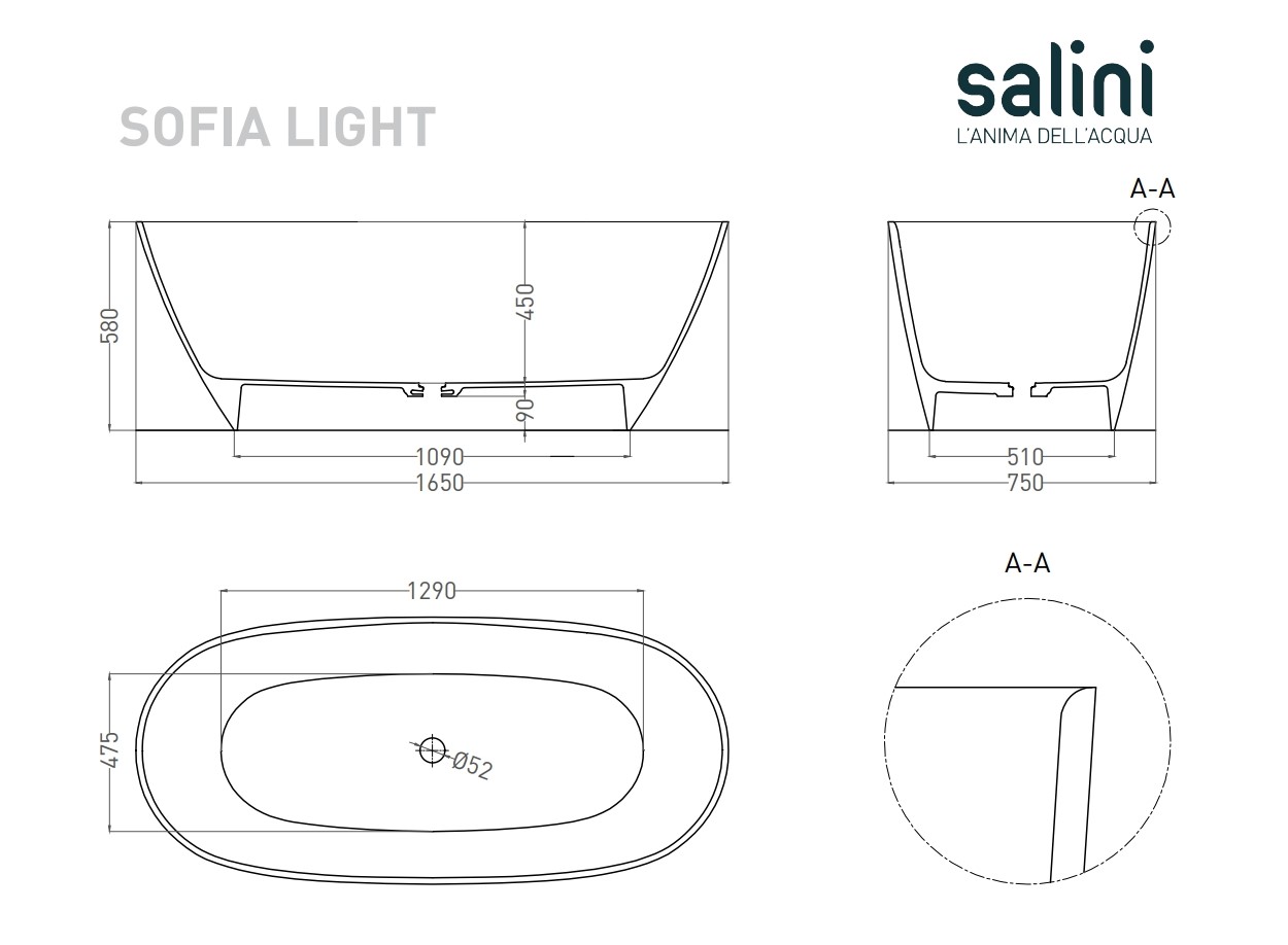 Ванна каменная SALINI SOFIA 103611GRH 165х75см отдельностоящая - купить в интернет-магазине Орегон с доставкой в регионы Крыма.